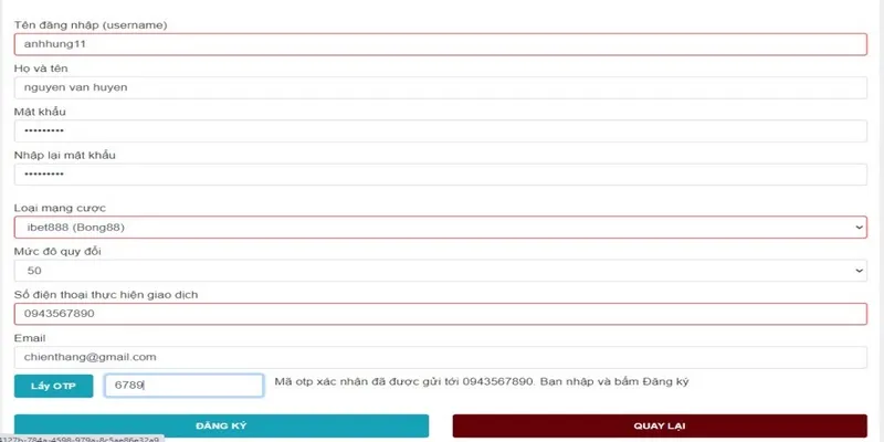 • Họ tên thật của người chơi
