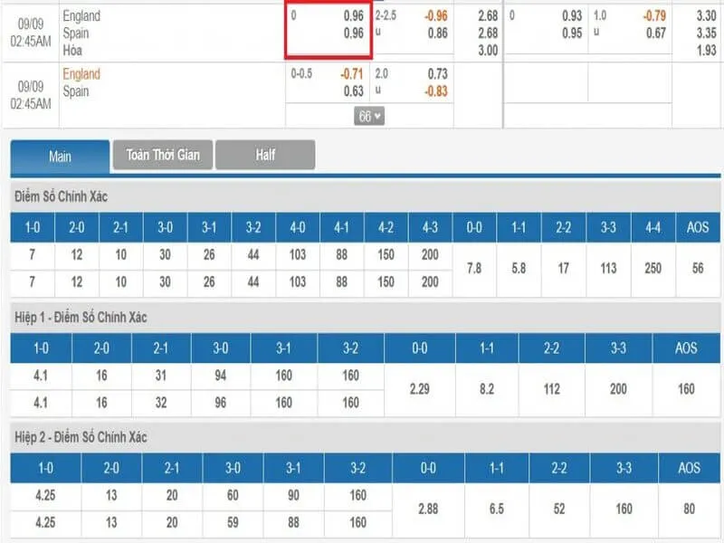 - 0: Đây là chỉ số thể hiện về tỷ lệ chấp giữa hai đội bóng tham gia trận đấu là 0 trái