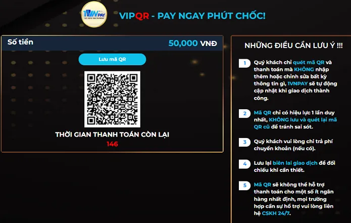 Lưu ý: Số tiền tối thiểu để nạp tiền bằng hình thức này là từ 50 nghìn đến 100 triệu đồng.