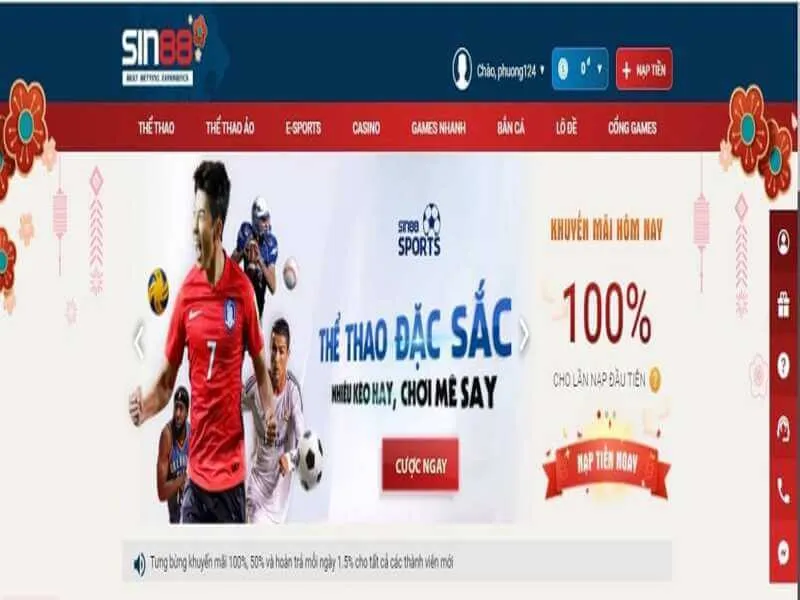 Nhà cái Sin88 tặng tiền miễn phí cho người chơi