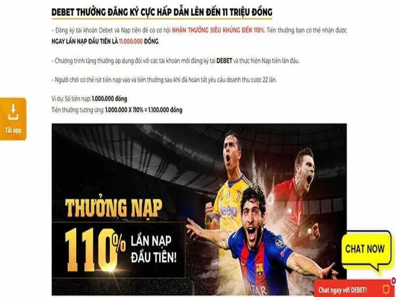 Các mức này có thể là 10%, 20%, 50%, 100% hay thậm chí là 110% đối với người chơi nạp tiền. Đây được xem là hình thức tặng tiền miễn phí phổ biến nhất mà bất cứ trang cá độ nào cũng áp dụng.
